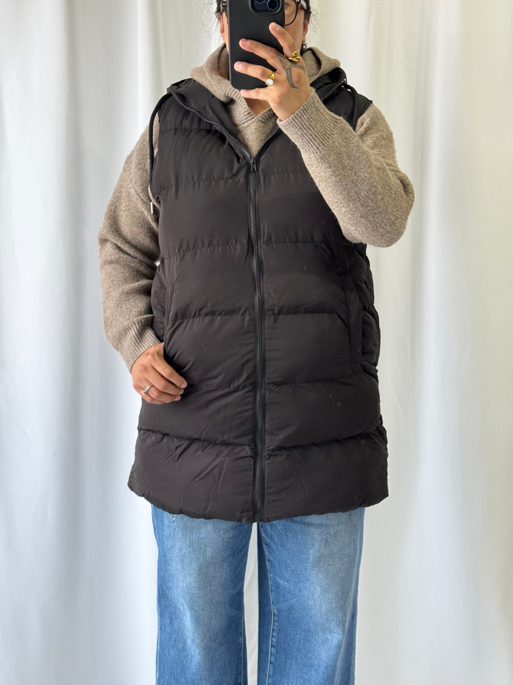 bluivy Hooded Zipper Down Longline Puffer Vest