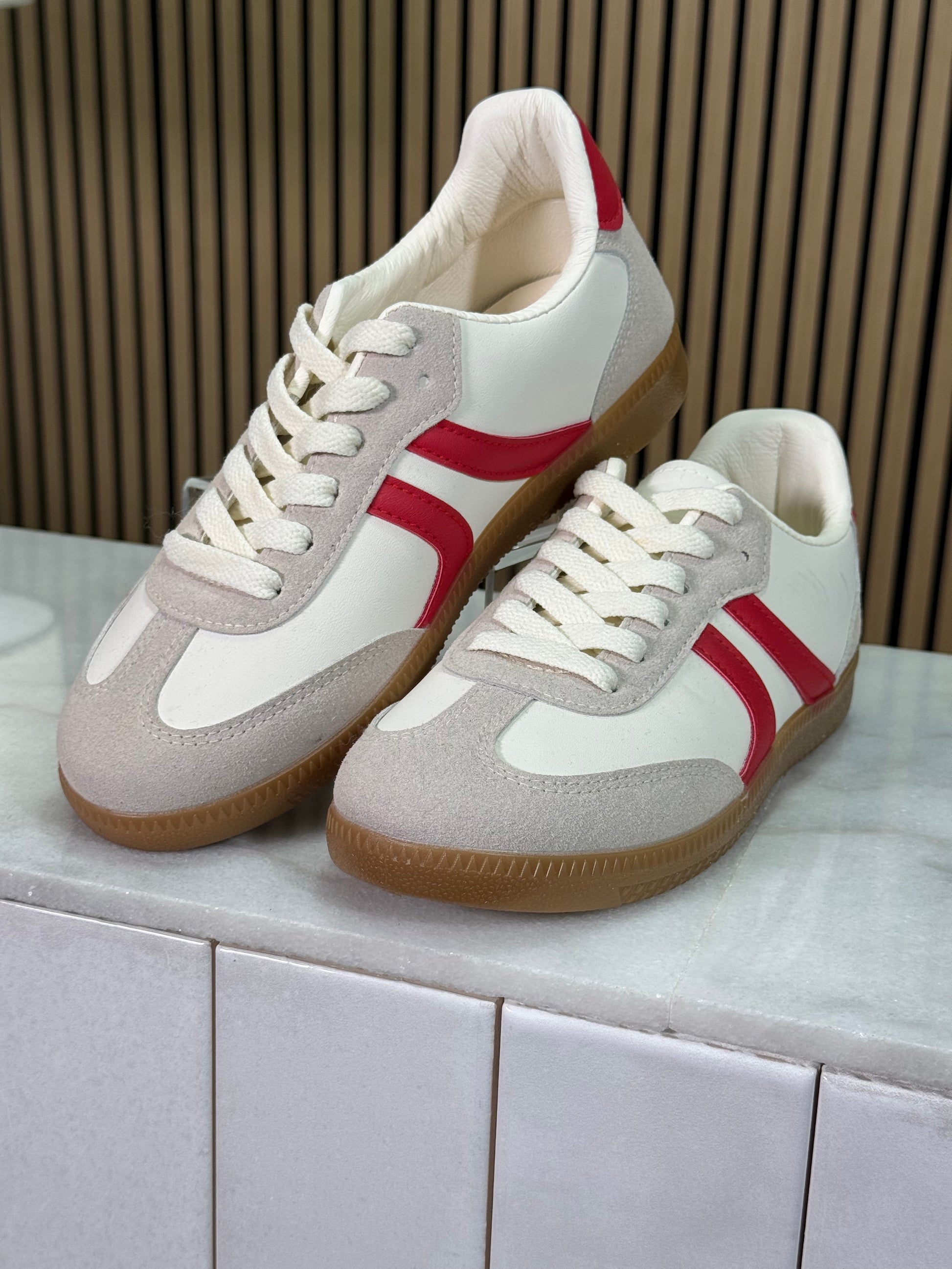 RETRO INSPIRED SNEAKER STRIP DESIGN GUM COLORED SOLE