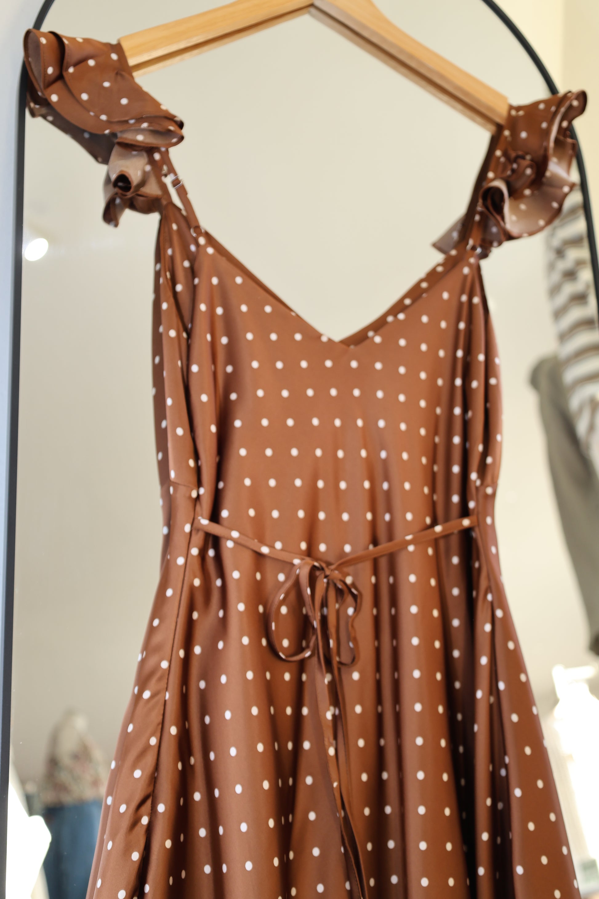 Dress Forum - Satin Polka-Dot Ruffled Strap Dress