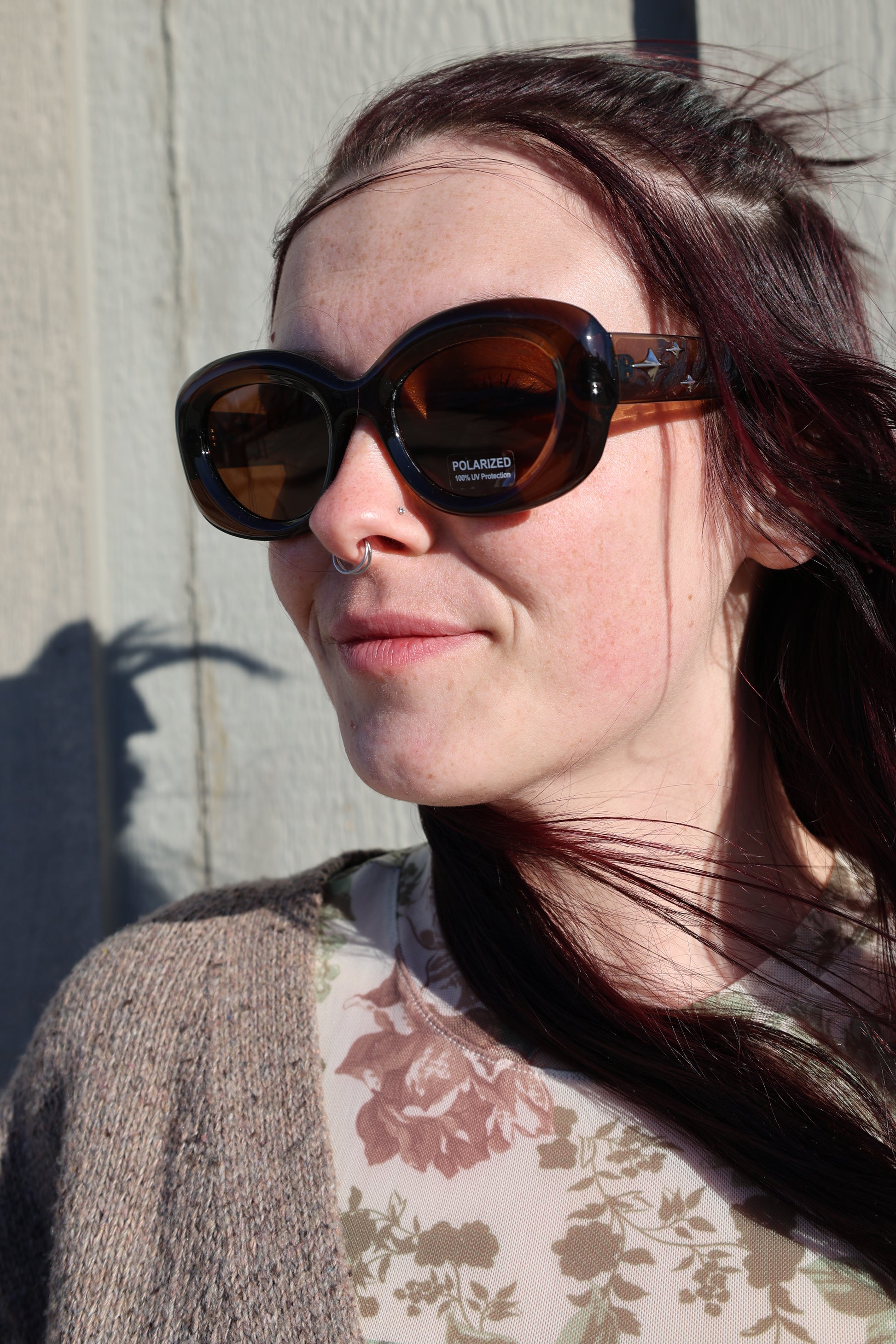 Bianca Polarized Sunglasses feature an oversized round bubble frame. The silver star embellishments add a touch of sparkle to this bold style. Available in torte, black, and brown, Bianca effortlessly merges unique design with statement-making details for a standout look.