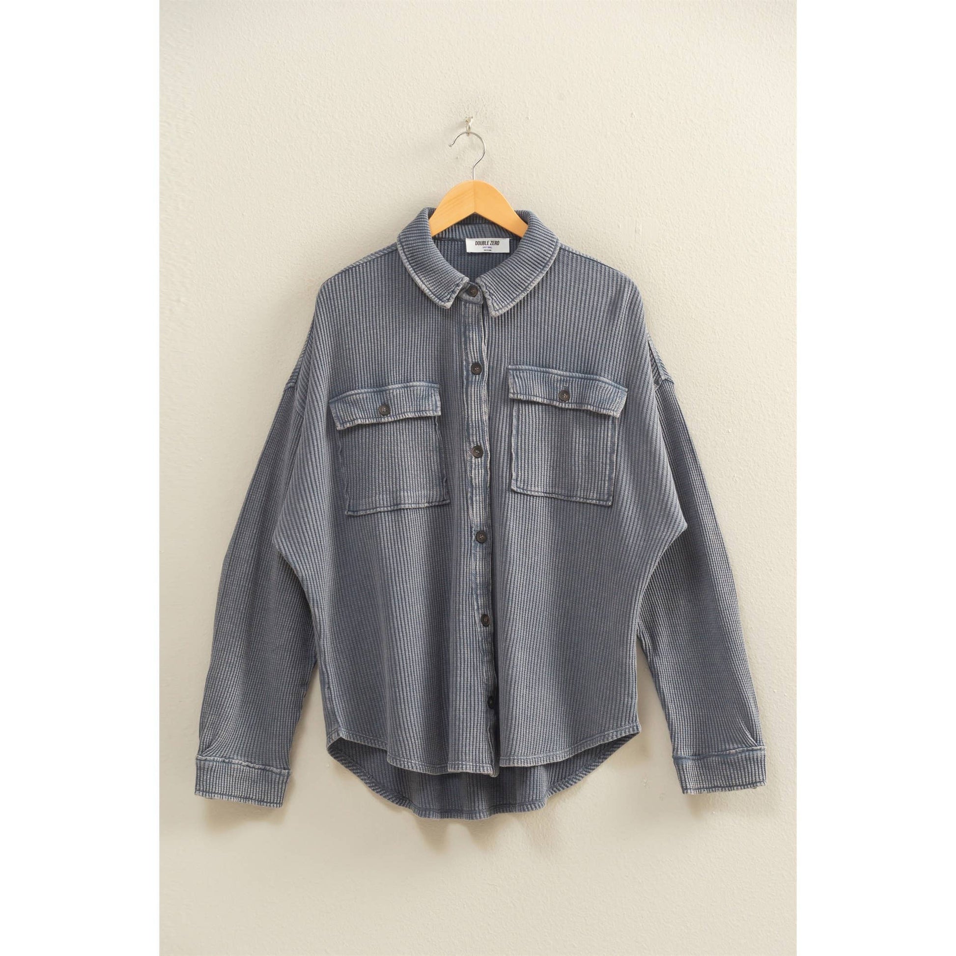 HYFVE - Oversized Mineral Washed Waffle Button Up Shacket