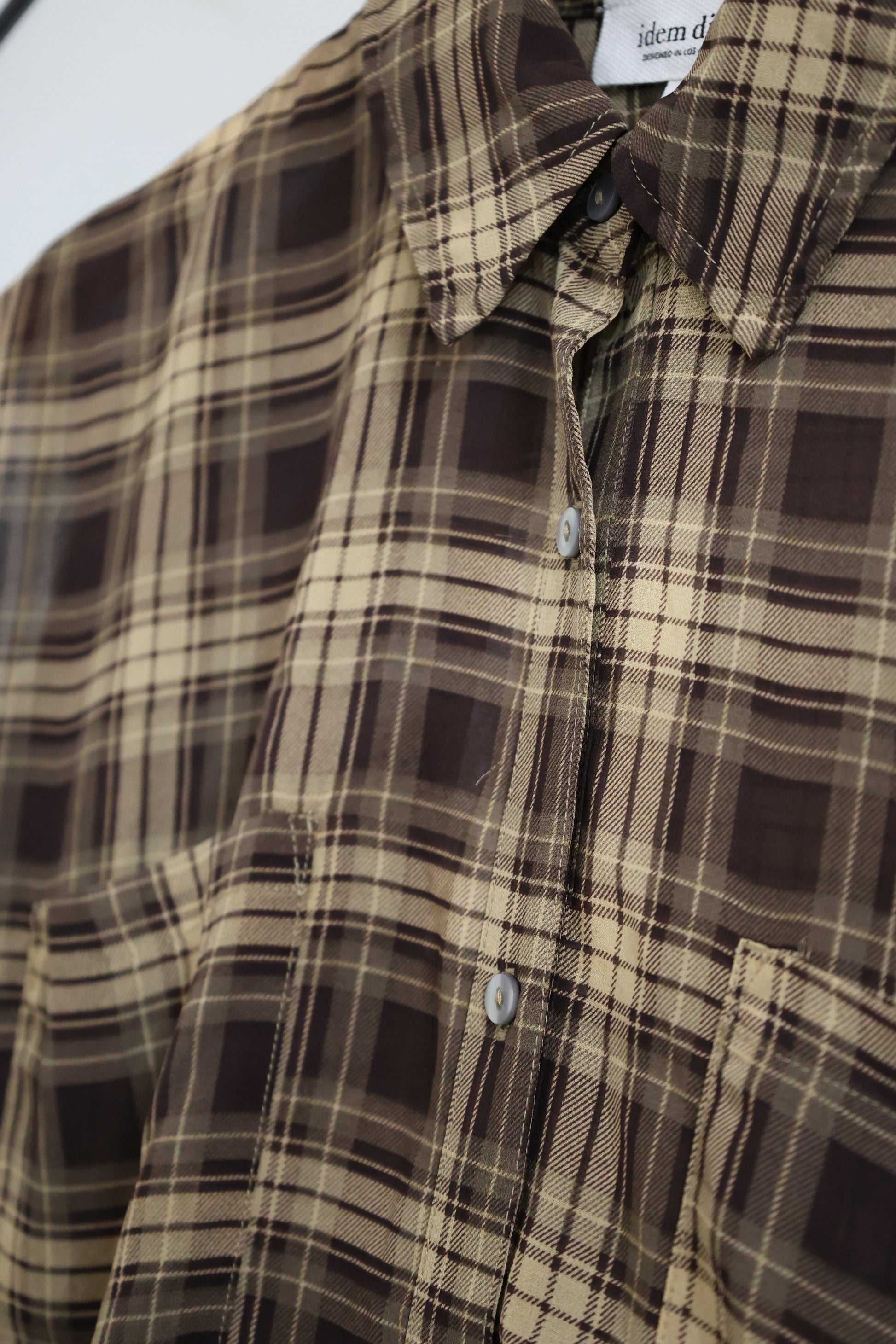 idem ditto - EDGY TRANSPARENT SHEER PLAID CHIFFON BUTTON-DOWN SHIRT