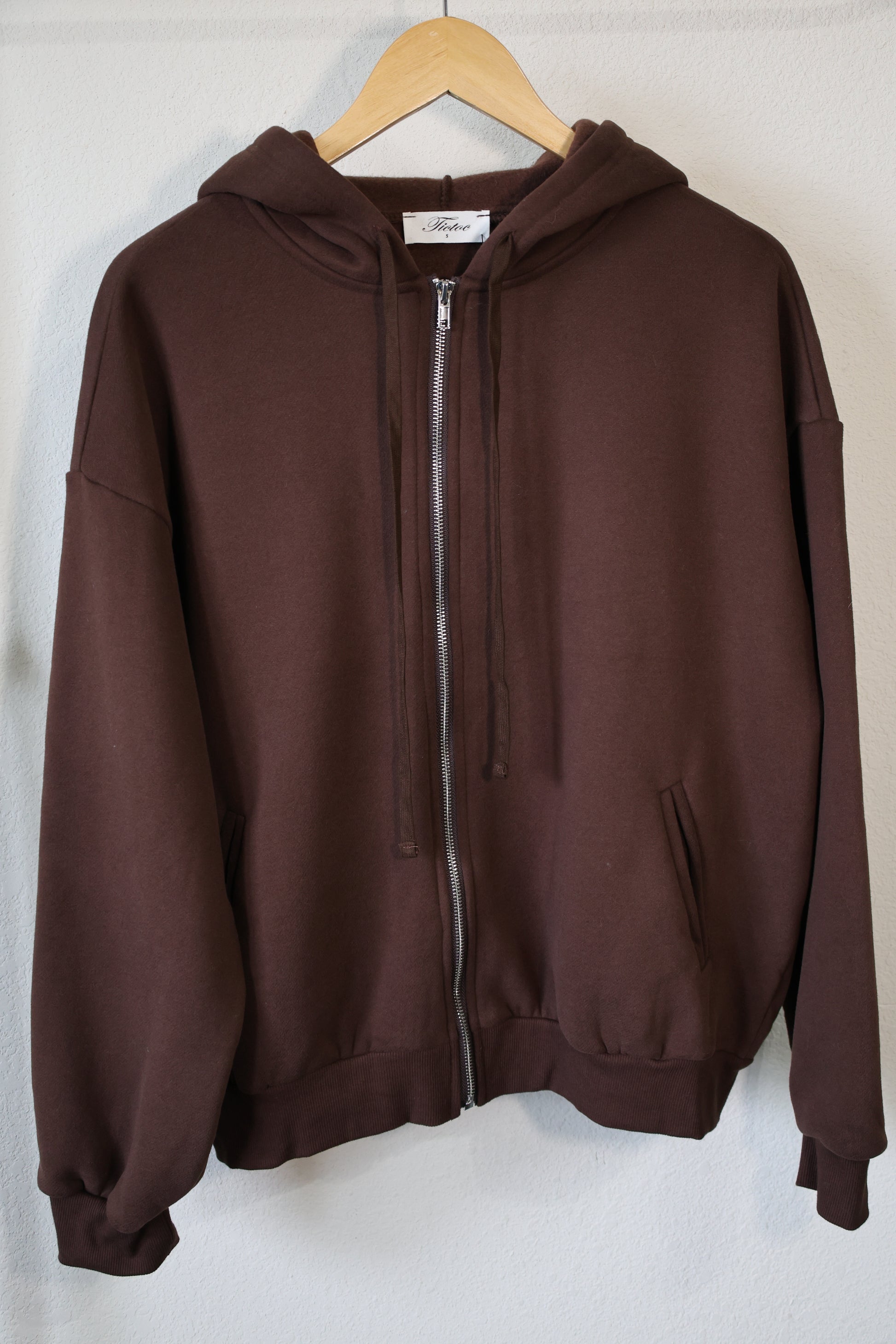 TICTOC - UNIVERSITY Plush Fleece Loose Fit Zip Up Hoodie With Pockets