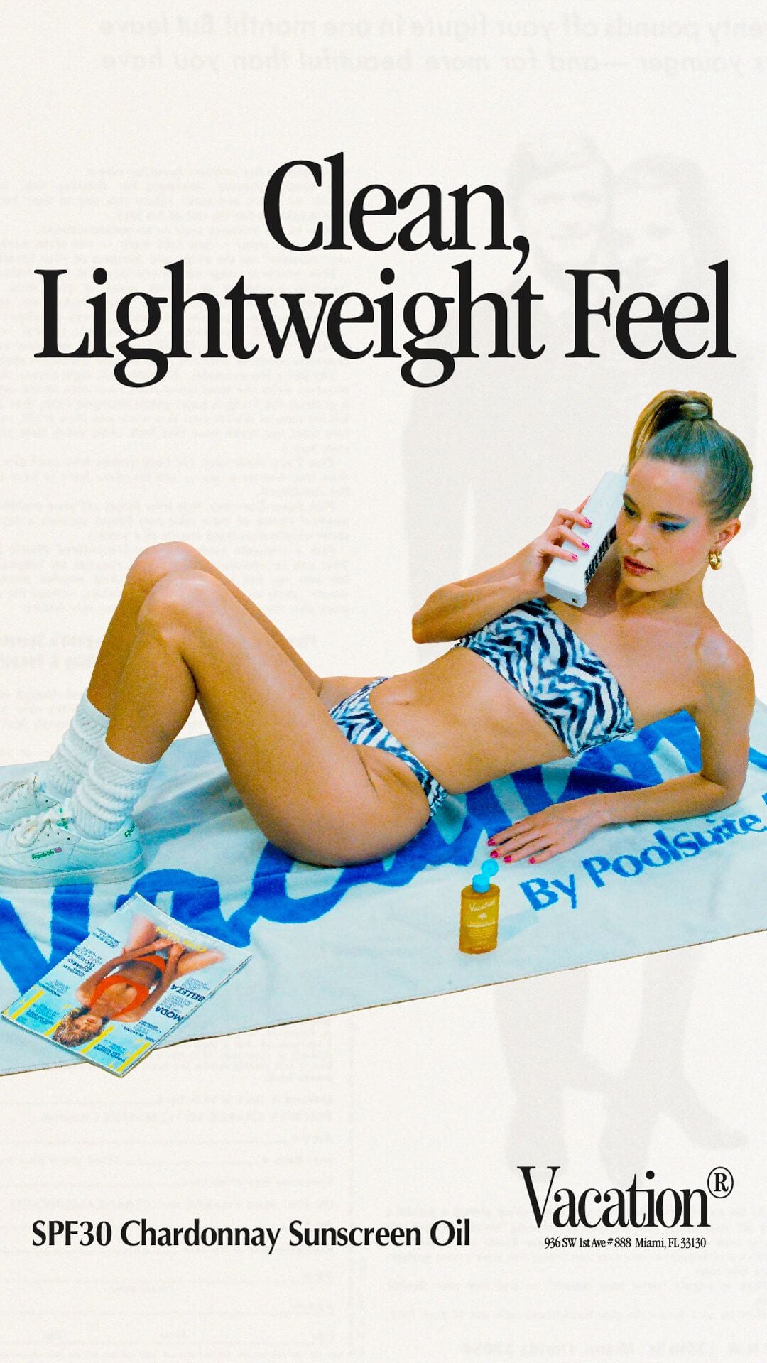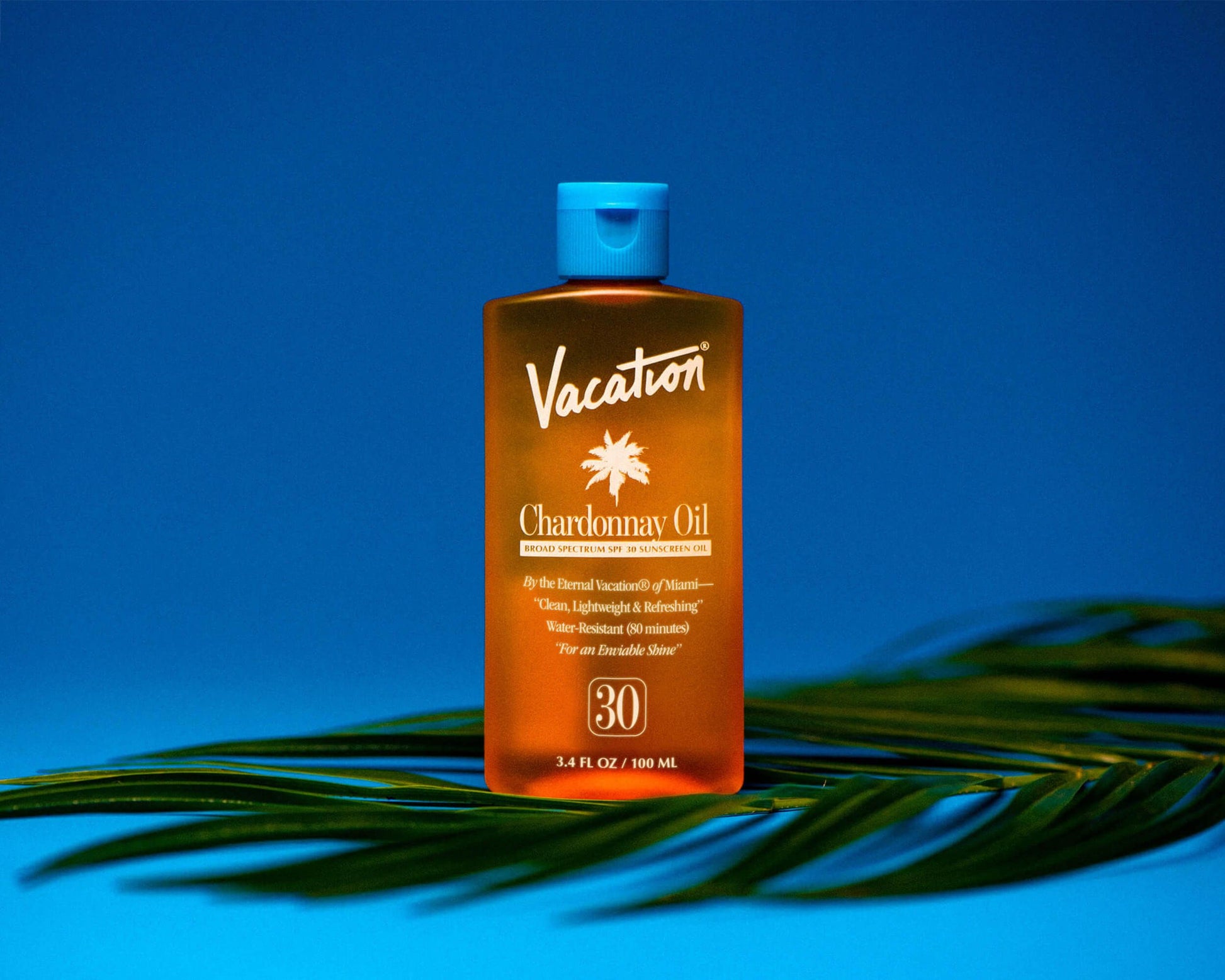 - Vacation® Brand Chardonnay Oil is a sophisticated, 21st-century elevation of the tanning oils you once loved. It replaces the greasy, questionable oils of the past with the clean, lightweight feel of Chardonnay grapeseed oil and jettisons the low (or no) SPF rating with the best in broad spectrum SPF 30 protection. With Vacation® Chardonnay Sunscreen Oil, you’ll achieve the enviable summer shine you want while giving your skin the protection and hydration it requires… nay, deserves.